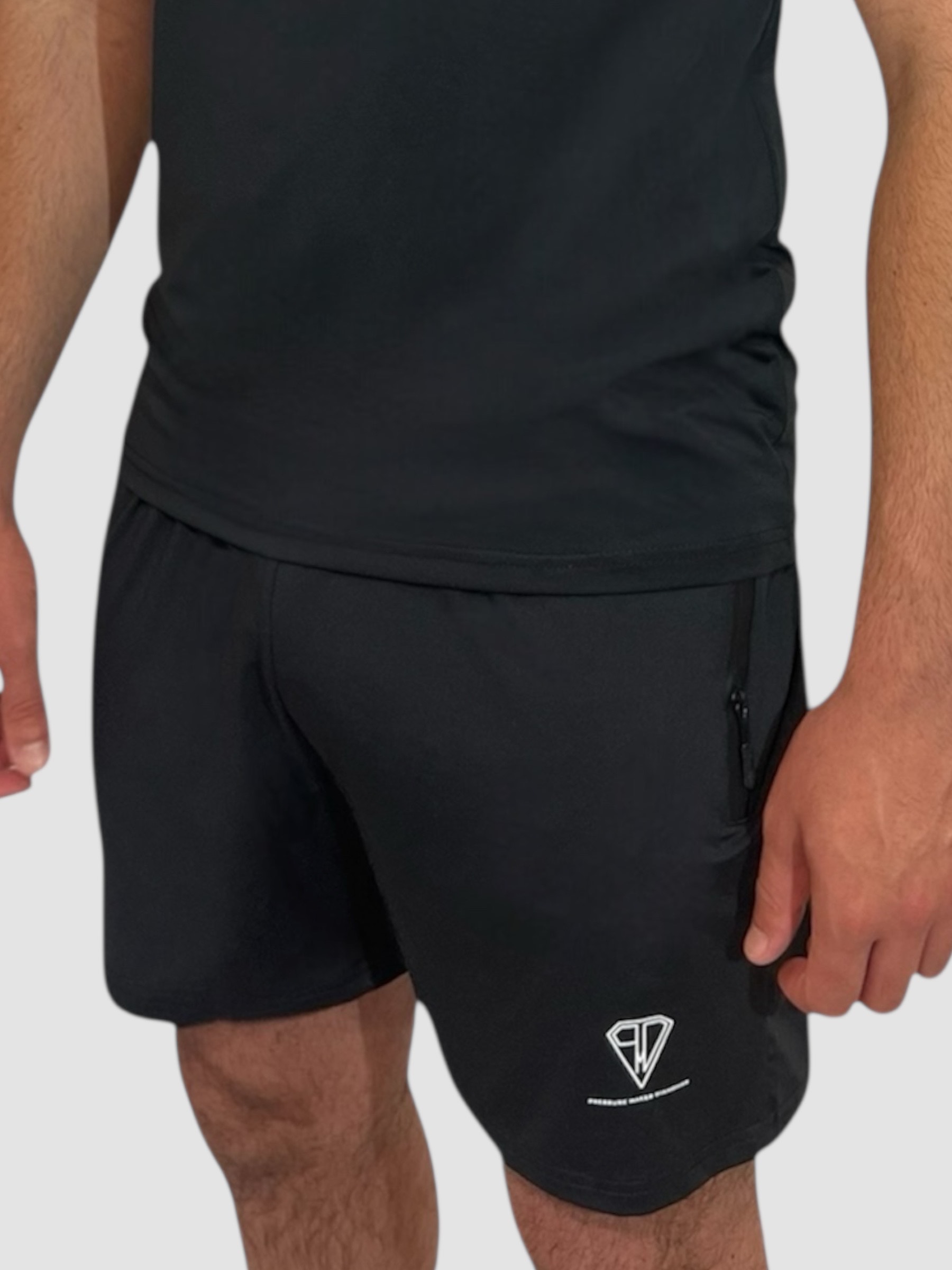 Engineered for training, designed for everyday wear. Our men’s gym shorts are made from a durable 87% polyester / 13% spandex blend that delivers lightweight comfort, stretch, and breathability. The athletic cut allows for maximum mobility, while the zipped side pockets keep your essentials secure. Finished with the signature Pressure Makes Diamonds logo, these shorts are perfect for intense workouts or relaxed streetwear style.