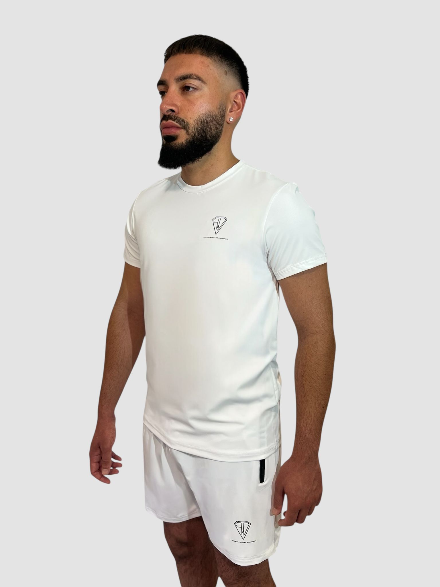 The White T Shirt & Short Set blends performance and style in one clean, comfortable fit. Designed with a regular-fit T-shirt and above-knee shorts, it’s ideal for training, rest days, and everything in between.